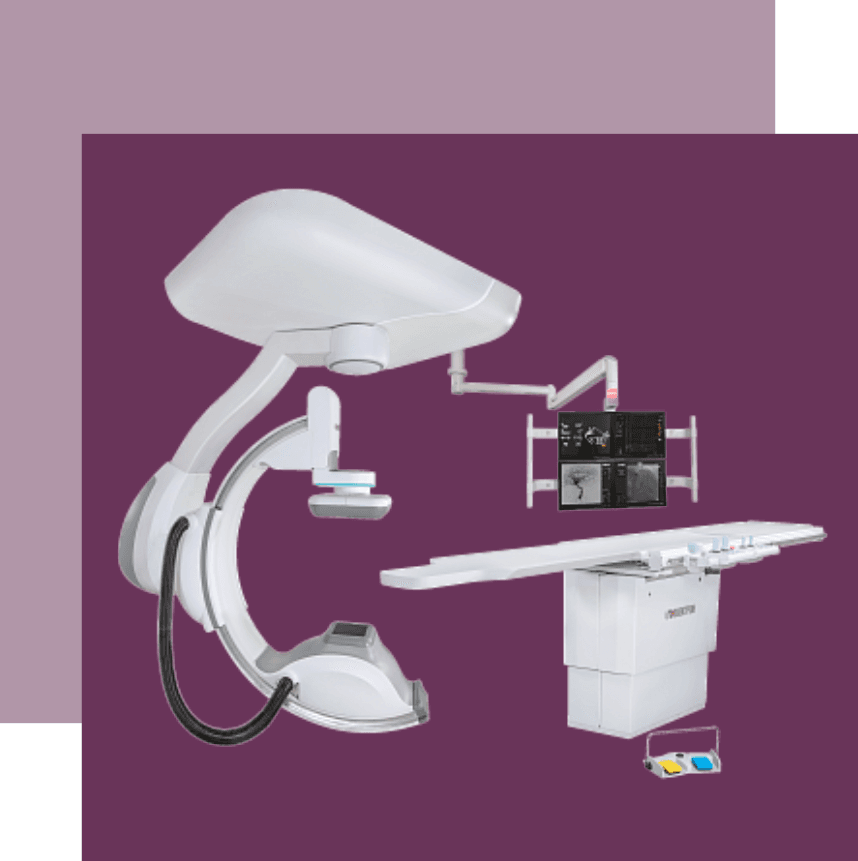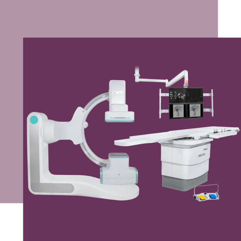 Комплекс ангиографический рентгеновский АКР разработан совместно с российским врачебным сообществом. Позволяет проводить широкий спектр диагностических процедур и осуществлять контроль лечебных интервенционных вмешательств в кардиологии, ангиологии, неврологии, онкологии и других областях. • Ротационная ангиография с программированием траектории • Коронарография, усиление видимости коронарных стентов • Контроль эндоваскулярных вмешательств на сосудах всех анатомических областей • Проведение электрофизиологических исследований и процедур • Балонная ангиопластика, стентирование, эмболизация любых сосудов • Получение обзорного изображения сосудов конечностей по результатам слежения за болюсом контрастного вещества • Установка кава-фильтров и тромболизис • Дренирование и стентирование протоков • Получение и анализ изображений в 3D Преимущества • Напольное и потолочное крепление С-дуги • Высокое диагностическое качество визуализации • Широкое клиническое применение • Низкая лучевая нагрузка на пациента за счет высокой квантовой эффективности детектора • Ротационная ангиография и получение 3D-изображений • Возможность комплектации системы детекторами различного формата для применения в широком спектре нозологий • Русскоязычный интуитивно понятный интерфейc • Хранение изображений на выделенном файл-сервере, который обеспечивает прием и передачу данных в формате DICOM