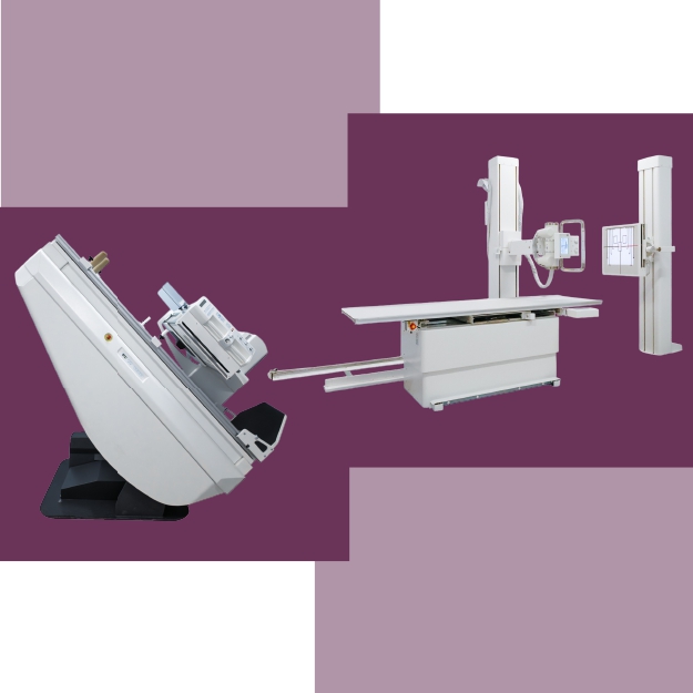 Комплекс рентгеновский диагностический цифровой на три рабочих места предназначен для проведения всех видов рентгенологических исследований: цифровой рентгеноскопии, цифровой рентгенографии и цифровой линейной томографии. • Стол рентгеновский поворотный «BIO Scope» оснащен электронным ЭСУ с функциями формат-автоматики, панелью управления движениями стола и деки, выбором программы при снимках. • Томографический стол снимков оснащён стационарным устройством для цифрового преобразования рентгеновского излучения, основанном на плоской панели (плоскопанельным цифровым детектором) формата 43×43 см. • Вертикальная стойка снимков оснащена стационарным устройством для цифрового преобразования рентгеновского излучения, основанном на плоской панели (плоскопанельным цифровым детектором) формата 43×43 см. • Программно-аппаратный комплекс включает в себя компьютер с набором средств управления и систему современным графическим интерфейсом, Аккорд АМИКО, работающую в международном мед стандарте DICOM 3.0.